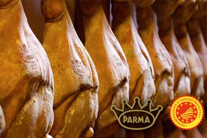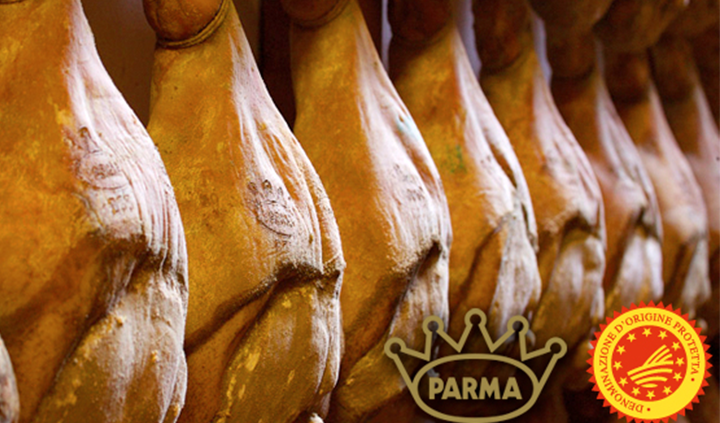 Il prosciutto di Parma è un salume tipico della provincia di Parma; più precisamente la zona di produzione è posta 5 km a sud della via Emilia, fino ad un’altitudine non superiore a 900 m, delimitata ad est dal torrente Enza e ad ovest dal torrente Stirone. È celebre in tutto il mondo e si contraddistingue oltre che per le peculiarità nutrizionali (unici ingredienti sono carne suina e sale, senza additivi né conservanti) anche per la “corona”, il marchio che viene impresso a fuoco solo sull’originale.